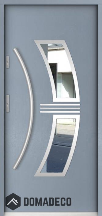 Die Türen bestehen aus Edelstahl. Im Inneren ist es mit PUR-Polyurethanschaum und Holz gefüllt. Die Türblattdicke beträgt 55 mm. Doppeldichtungssystem - Eine Dichtung befindet sich am unteren Rand des Rahmens und die andere im Lagerteil des Türblatts. Sie reduzieren Vibrationen und schützen Ihr Zuhause vor Wärmeverlust. Sie ändern ihre Lautstärke nicht unter dem Einfluss von Wetterbedingungen. Der Türrahmen hat einbruchhemmende Verstärkungen in den Scharnierteilen und Verriegelungspunkten.