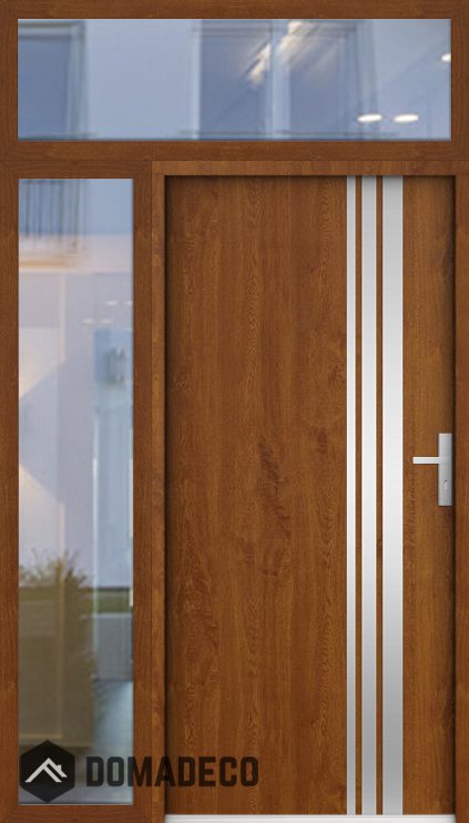 Die Türen bestehen aus Edelstahl. Im Inneren ist es mit PUR-Polyurethanschaum und Holz gefüllt. Die Türblattdicke beträgt 73 mm. Doppeldichtungssystem - Eine Dichtung befindet sich am unteren Rand des Rahmens und die andere im Lagerteil des Türblatts. Sie reduzieren Vibrationen und schützen Ihr Zuhause vor Wärmeverlust. Sie ändern ihre Lautstärke nicht unter dem Einfluss von Wetterbedingungen. Der Türrahmen hat einbruchhemmende Verstärkungen in den Scharnierteilen und Verriegelungspunkten.