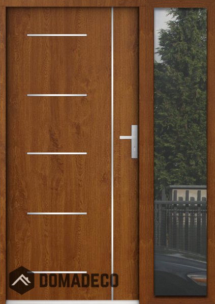Die Türen bestehen aus Edelstahl. Im Inneren ist es mit PUR-Polyurethanschaum und Holz gefüllt. Die Türblattdicke beträgt 73 mm. Doppeldichtungssystem - Eine Dichtung befindet sich am unteren Rand des Rahmens und die andere im Lagerteil des Türblatts. Sie reduzieren Vibrationen und schützen Ihr Zuhause vor Wärmeverlust. Sie ändern ihre Lautstärke nicht unter dem Einfluss von Wetterbedingungen. Der Türrahmen hat einbruchhemmende Verstärkungen in den Scharnierteilen und Verriegelungspunkten.