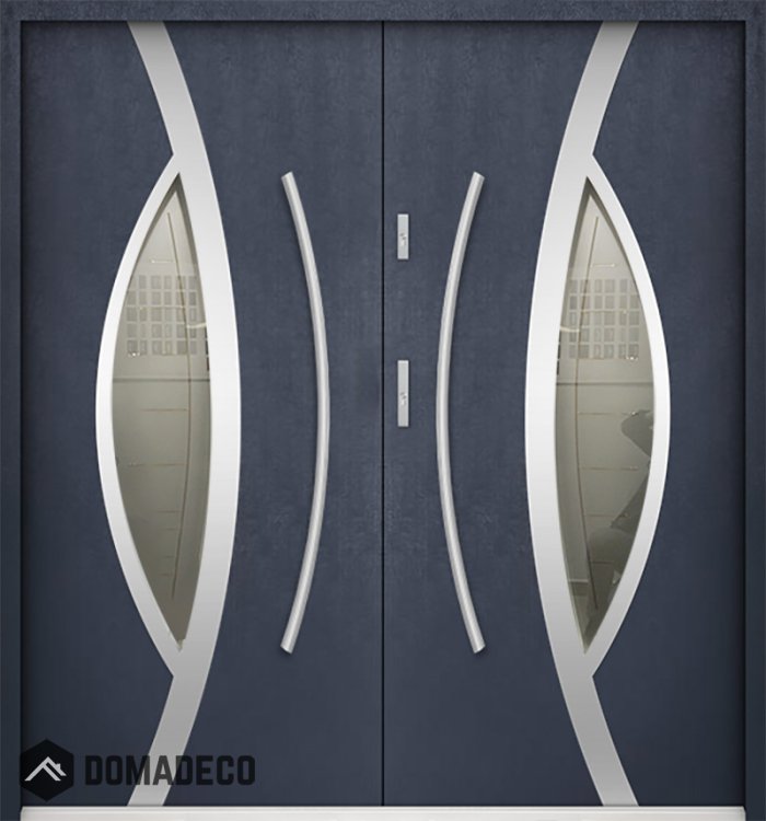 Die Türen bestehen aus Edelstahl. Im Inneren ist es mit PUR-Polyurethanschaum und Holz gefüllt. Die Türblattdicke beträgt 55 mm. Doppeldichtungssystem - Eine Dichtung befindet sich am unteren Rand des Rahmens und die andere im Lagerteil des Türblatts. Sie reduzieren Vibrationen und schützen Ihr Zuhause vor Wärmeverlust. Sie ändern ihre Lautstärke nicht unter dem Einfluss von Wetterbedingungen. Der Türrahmen hat einbruchhemmende Verstärkungen in den Scharnierteilen und Verriegelungspunkten.