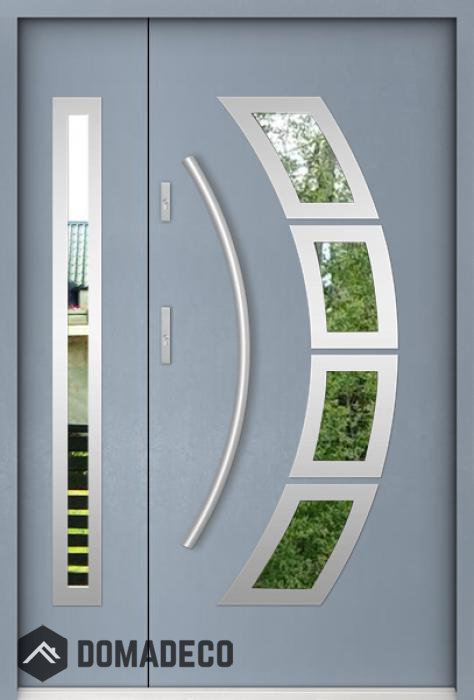 Die Türen bestehen aus Edelstahl. Im Inneren ist es mit PUR-Polyurethanschaum und Holz gefüllt. Die Türblattdicke beträgt 55 mm. Doppeldichtungssystem - Eine Dichtung befindet sich am unteren Rand des Rahmens und die andere im Lagerteil des Türblatts. Sie reduzieren Vibrationen und schützen Ihr Zuhause vor Wärmeverlust. Sie ändern ihre Lautstärke nicht unter dem Einfluss von Wetterbedingungen. Der Türrahmen hat einbruchhemmende Verstärkungen in den Scharnierteilen und Verriegelungspunkten.