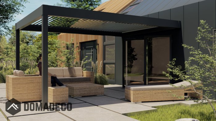 Das innovative Design macht unsere Pergola für viele Arten von Gebäuden und Gärten geeignet und ist ein luxuriöses dekoratives Element des Raums rund um das Haus. Bewegliche Lamellen, Seitenverglasungen und Sonnenblenden bieten unbegrenzte Anordnungsmöglichkeiten. Unser Produkt wird selbst den anspruchsvollsten Geschmack zufrieden stellen.